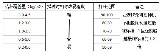 機具對不同作業(yè)條件的適應(yīng)程度(玉米秸稈還田覆蓋量表)