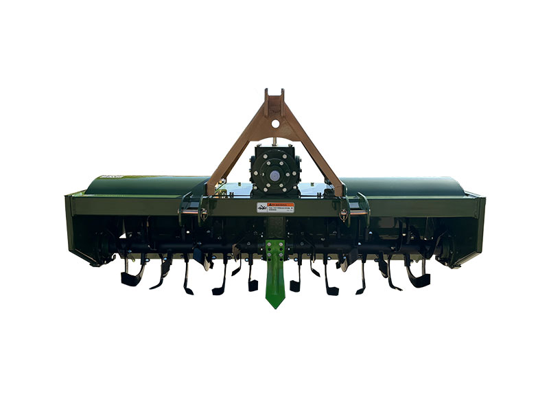 由拖拉機(jī)動(dòng)驅(qū)動(dòng)的耕整地作業(yè)機(jī)具,利用刀軸上旋耕刀的旋轉(zhuǎn)運(yùn)動(dòng)和機(jī)具前進(jìn)的復(fù)合運(yùn)動(dòng)對(duì)土地進(jìn)行旋耕碎土作業(yè),能一次完成耕、耙、平的作業(yè)。具有旱田碎土充分,地面平整,水田泥爛成漿,適應(yīng)性廣、作業(yè)效率高等優(yōu)點(diǎn)。