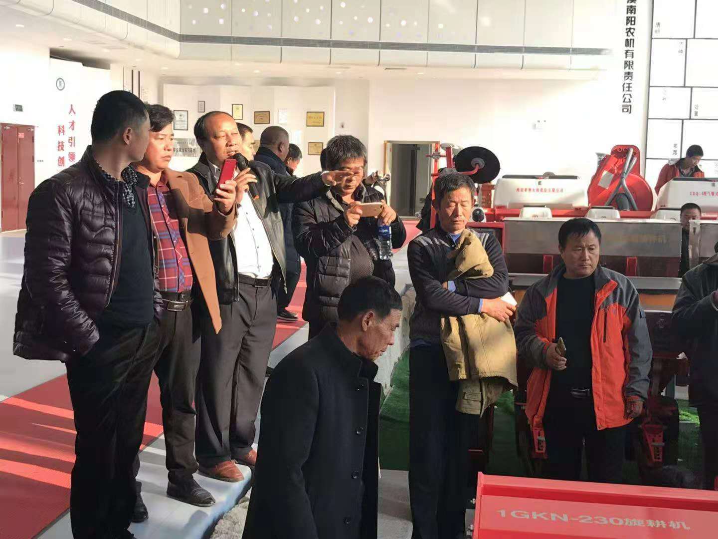 亞澳公司總經(jīng)理助理郭靖和銷(xiāo)售部經(jīng)理王紅衛(wèi)負(fù)責(zé)接待,一行70多人來(lái)到大廳,首先郭總給大家介紹了亞澳農(nóng)機(jī)的企業(yè)文化及發(fā)展歷程,并介紹了展廳里所展示的代表性機(jī)具。