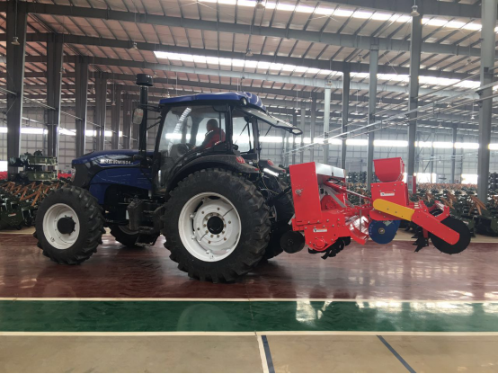 唐河縣土地面積250多萬畝,花生種植面積60多萬畝。為了推進(jìn)唐河花生種植面積能夠進(jìn)一步擴(kuò)大,縣政府指示依托縣農(nóng)機(jī)產(chǎn)業(yè)園亞澳農(nóng)機(jī)生產(chǎn)、研發(fā)專門用于花生種植、收獲的機(jī)械。亞澳今天投放市場的花生精量播工作效率相當(dāng)于60人的工作量,已成為春耕的主力軍。在上屯鎮(zhèn)演示會(huì)現(xiàn)場,隆隆的機(jī)聲中,四臺不同規(guī)格的花生精量施肥播種機(jī)同時(shí)作業(yè)。所到之處,能夠一次性完成播種、施肥、起壟等多道工序,實(shí)現(xiàn)了多壟多行寬幅聯(lián)合播種作業(yè)。