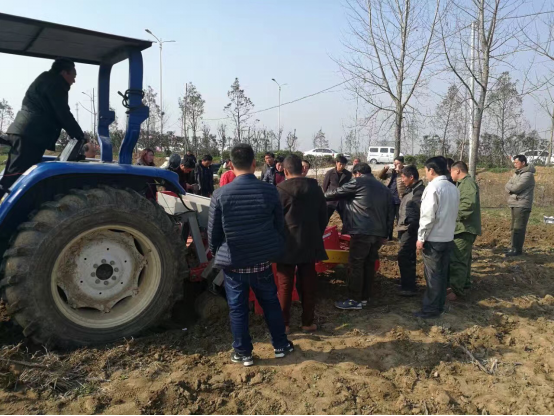 現(xiàn)場會(huì)上,亞澳專業(yè)技術(shù)人員及銷售經(jīng)理對我廠新研發(fā)的花生精量播種機(jī)做了詳細(xì)介紹,各鄉(xiāng)鎮(zhèn)社員及各站站長針對花生種植技術(shù)、施肥方法和機(jī)械化播種等方面做了詳細(xì)講解。隨后,60名用戶和農(nóng)技人員一同觀摩了機(jī)械化播種演示。