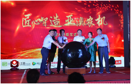 7月11日上午,CCTV發(fā)現(xiàn)之旅《匠心智造》欄目亞澳農(nóng)機(jī)開機(jī)儀式隆重舉行。匠心欄目組監(jiān)制李會晴、導(dǎo)演張軍賢、中國農(nóng)業(yè)機(jī)械化協(xié)會劉憲會長、中國農(nóng)機(jī)工業(yè)協(xié)會劉偉華副秘書長、農(nóng)業(yè)部農(nóng)機(jī)推廣總站劉司法處長、中國農(nóng)機(jī)流通協(xié)會馬錚處長、中國農(nóng)機(jī)安全報社王建鵬副社長、陜西省農(nóng)業(yè)機(jī)械化管理局上官永副局長、甘肅省農(nóng)業(yè)機(jī)械質(zhì)量管理總站張恩貴站長、山西省農(nóng)機(jī)推廣站張玉峰站長、陜西省農(nóng)業(yè)機(jī)械鑒定站王延宏站長、陜西省農(nóng)業(yè)機(jī)械研究所賀功民所長、戶縣人民政府毛安副縣長、西安灃京工業(yè)園黨工委楊波書記、西安亞澳農(nóng)機(jī)股份有限公司董事長史可器、總經(jīng)理史森強(qiáng)及各地經(jīng)銷商、給供應(yīng)商等300余人參加開機(jī)儀式.
